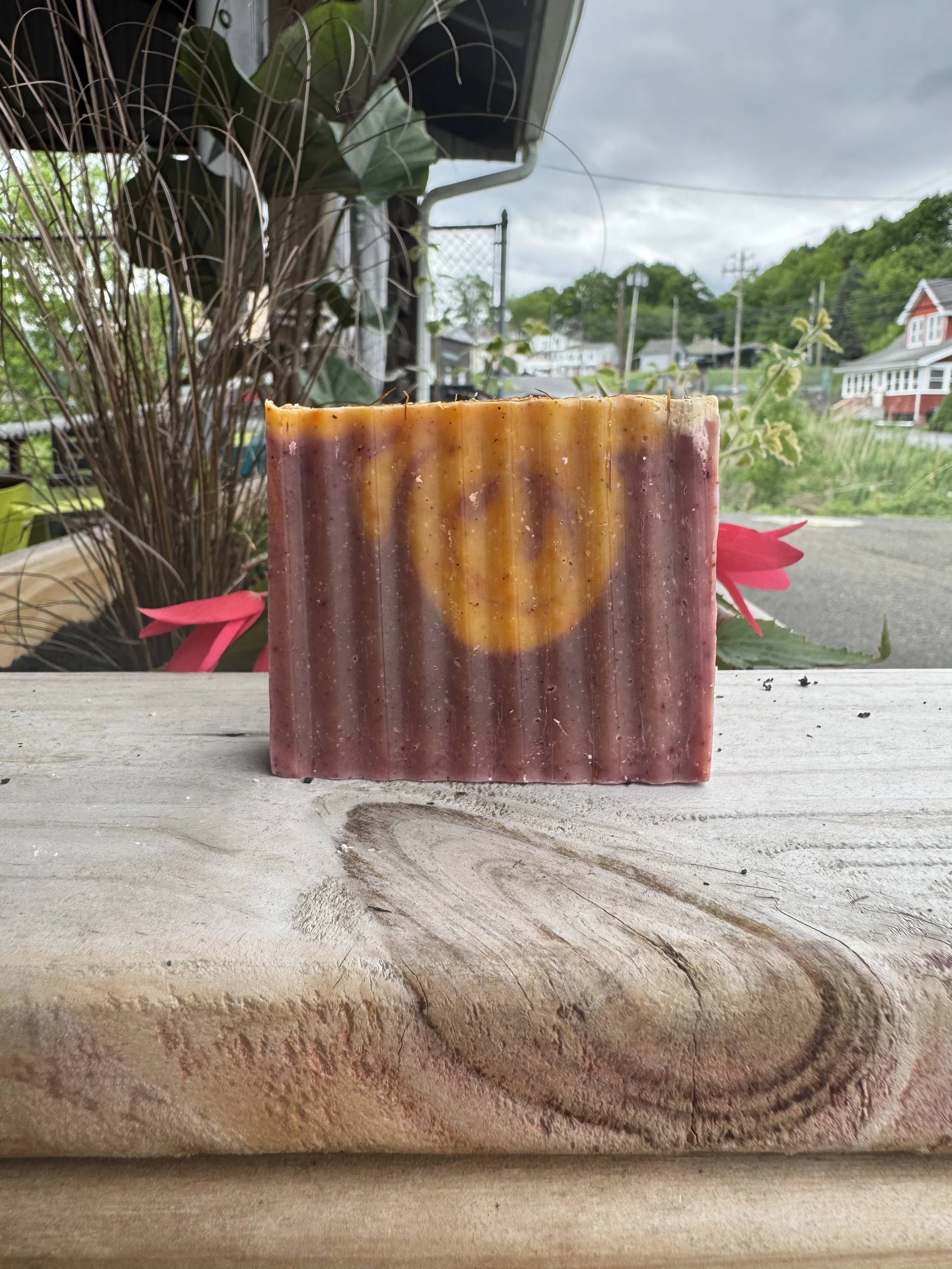 This soap surprised me with its red hues. Working with natural dyes means open to however a soap turns out! I love how it reminds me of the sun.